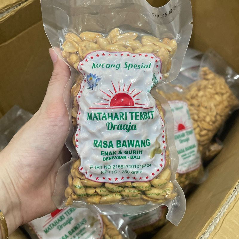 Kapri and Matahari brand nuts is made of genuine Balinese peanuts with good taste and very delicious savory and crunchy snack made either in transit or while relaxing at home. It is very tasteful and crunchy since they have included thin sliced roasted garlic to accentuate the flavor. With savoury and sweet taste, very different from other Bali peanuts. “Once you start it, then you can’t stop it”.