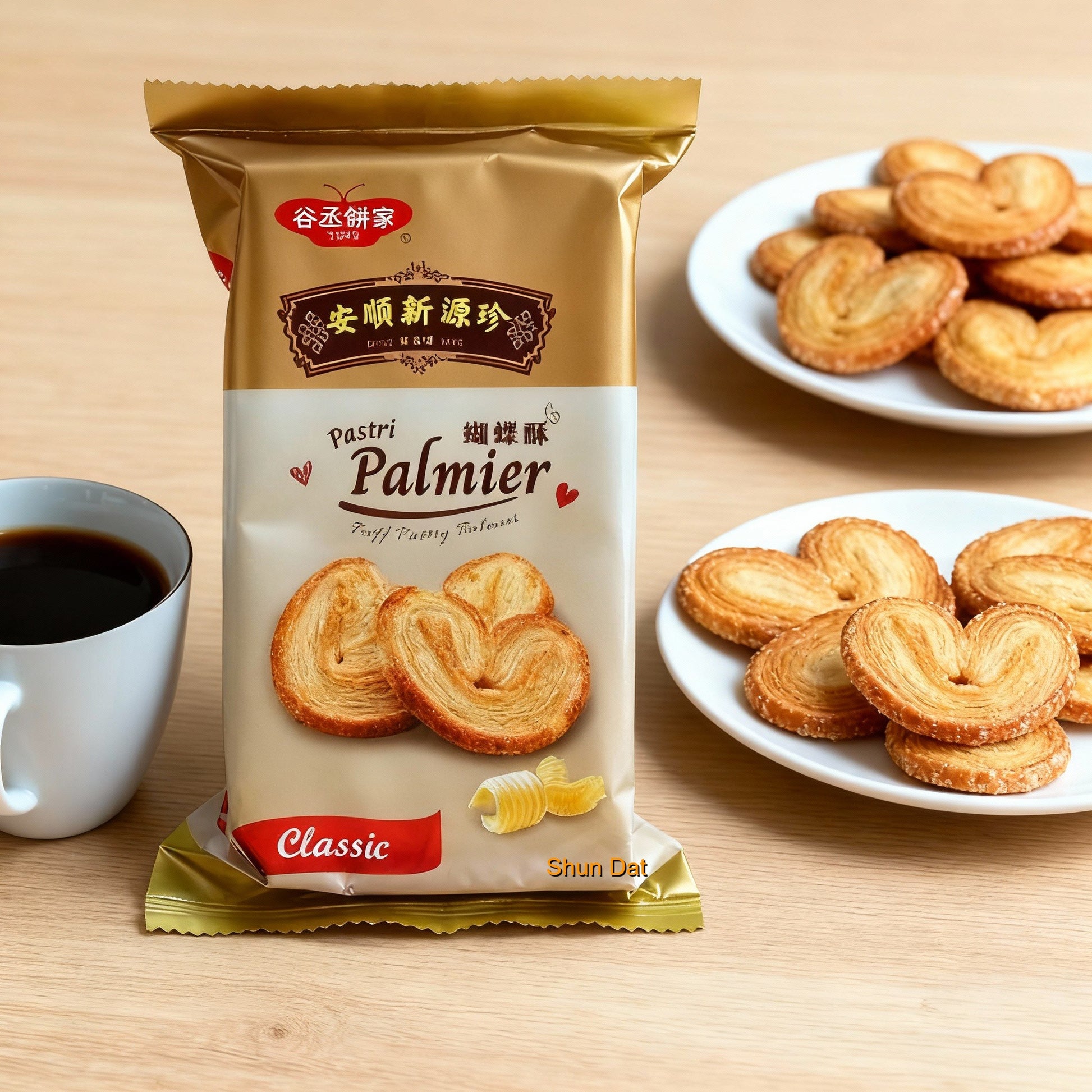 Savor the light, flaky perfection of Palmier 蝴蝶酥 — a classic butterfly-shaped pastry that combines golden crispiness with a rich buttery aroma. Each piece is delicately baked to achieve its signature melt-in-your-mouth texture, making it the perfect indulgence for tea time, gatherings, or an afternoon treat.
